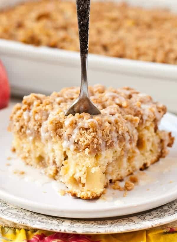 Ease into fall with this buttery apple crumb cake studded with apples and finished with a crunchy cinnamon crumb topping.