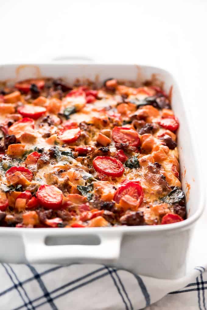 Overnight Sweet Potato and Sausage Breakfast Casserole | Garnish & Glaze