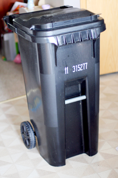 so now i'm curious… how much trash will our house produce in a week? i've emptied all of our trash cans and now the experiement begins. as of now, our kitchen trash can holds the wrappers of a couple of pieces of string cheese and the backing of some 3m adhesive hooks. so far so good.