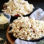 When I was growing up, my mom would always pop popcorn in bacon fat and it was served alongside slices of cheddar cheese. What can I say, she has great taste! I’ve simple elevated things a bit further by combining three of my favorite ingredients that make this Rosemary Parmesan Bacon Popcorn legendary. Kernels of popcorn take a swim in bacon fat before popping and then being tossed with fresh rosemary, shaved Parmesan cheese and crumbled bacon.