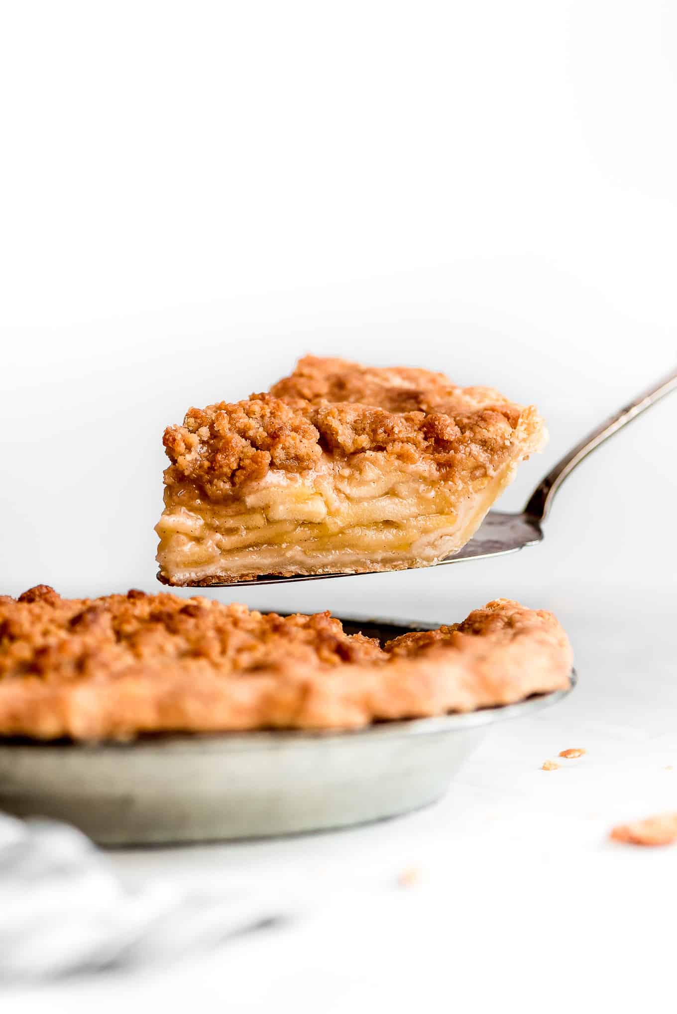 Dutch Apple Pie is a combination of a classic pie and a crisp. You get that same apple filling, flaky buttery crust, plus a sweet crispy crumb topping. This pie will knock your socks off!