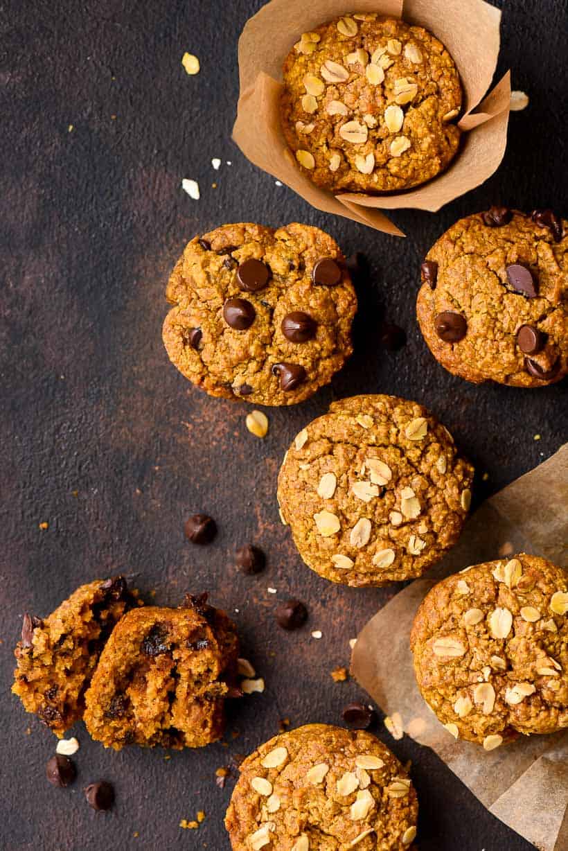 These Healthy Pumpkin Muffins are ridiculously easy to make, full of warm pumpkin spice, and naturally gluten free! You can load them up with chocolate chips, nuts, and cranberries or leave them plain! I love to make a big batch and freeze them for quick breakfasts throughout the week.